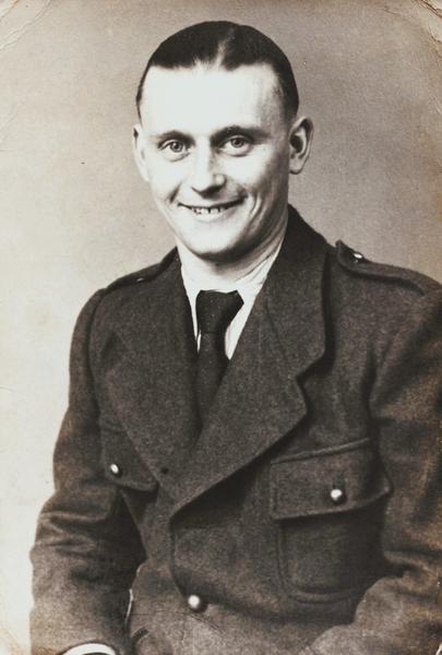 Né le 3 juin 1920 à Cambrai et baptisé en l’église St Géry le 13 juin 1920, ses parents sont commerçants primeurs et lui sera coiffeur. En 1939, il s’engage pour défendre son pays. Son frère ainé André étant marié et père de famille, c’est donc Robert qui s’enrôle bien qu’il soit fiancé à Alfreda. Affecté au 194eme régiment d’artillerie lourde tractée de Bordeaux, il est fait prisonnier en mai 40 et interné à la citadelle d’Amiens. Grace à des conditions de détention souples, il y verra Alfreda, sa fiancée. On lui permet de s’éloigner avec elle le temps d’une promenade. Il aurait pu s’échapper mais respectueux de la parole donnée, il revient à l’heure fixée. Il voyait Alfreda pour la dernière fois.