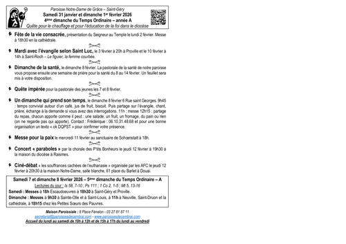 - Quête impérée pour la pastorale des jeunes les 7 et 8 février.