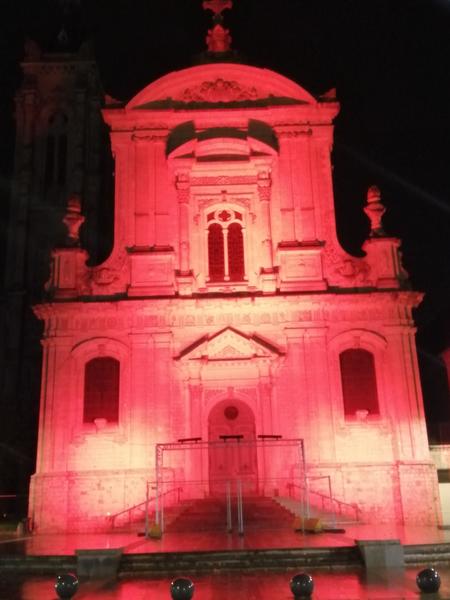 - La façade de la cathédrale sera illuminée en rouge durant la semaine. Merci aux services municipaux de la ville.