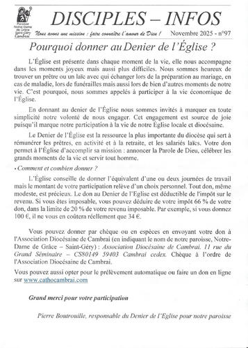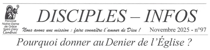 Ce quatre vingt dix septienne numéro accompagnait la feuille de chants et d'annonces du dimanche 9 novembre et se trouve au fond de nos églises.